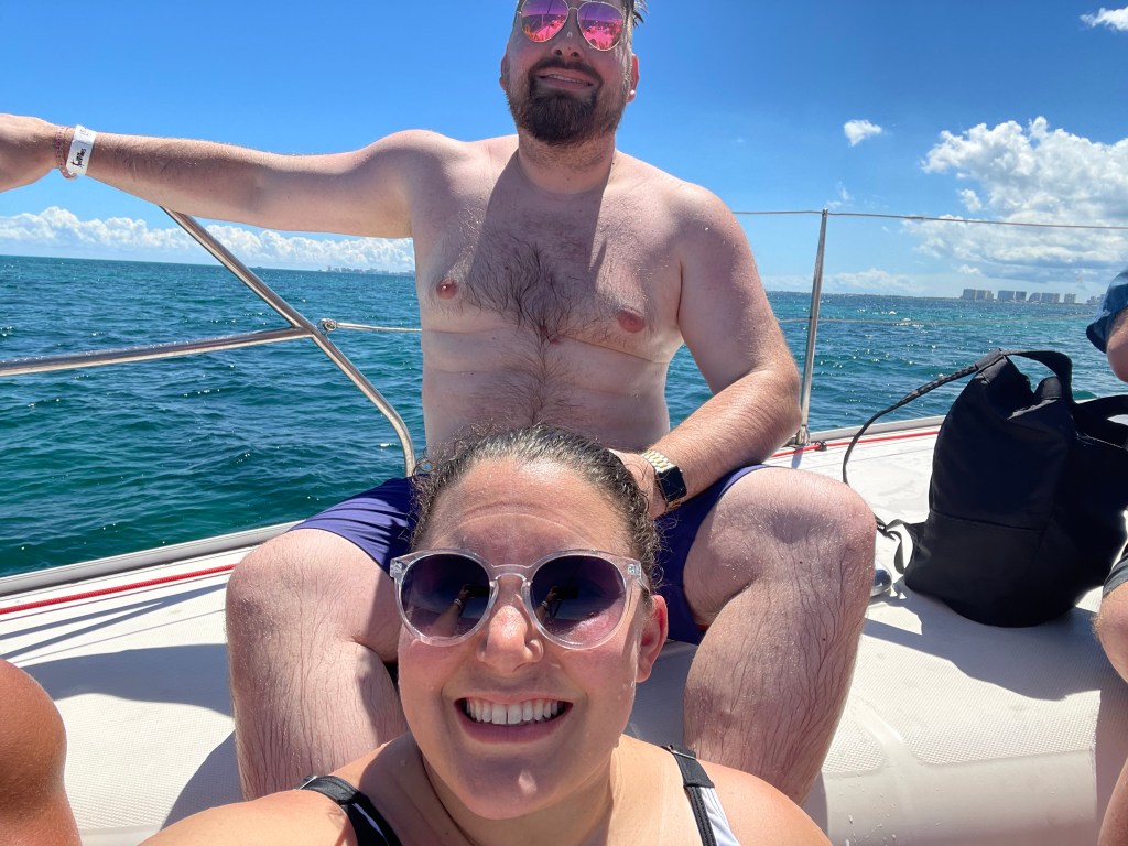 The day after we visited Chichén Itzá, we took a boat tour to Isla Mujeres (Island of Women). On past vacations, Nick and I have done boat tours, and we absolutely love them. Visiting the island was merely an added bonus–our favorite part was the boat ride and snorkeling break.