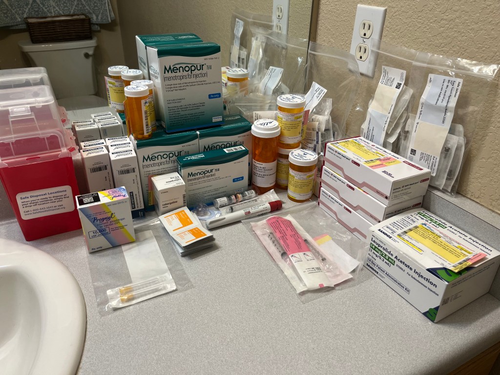 This is what starting IVF looks like. These are all the meds I’ll need for the egg retrieval process. It starts out with a few, and then they build on each other over the next 11 days. Maybe this has something to do with my anxiety…