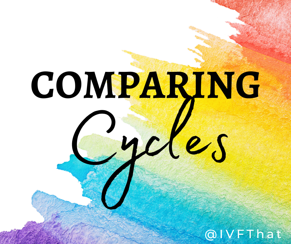 Another way I’ve been comparing the two cycles is in the number and size of follicles I’ve had at each stage. It’s been hard to do a direct comparison because in each cycle, I had a couple days where I could skip the blood draw/ultrasound appointment. Those days off fell on different IVF days between the two cycles.