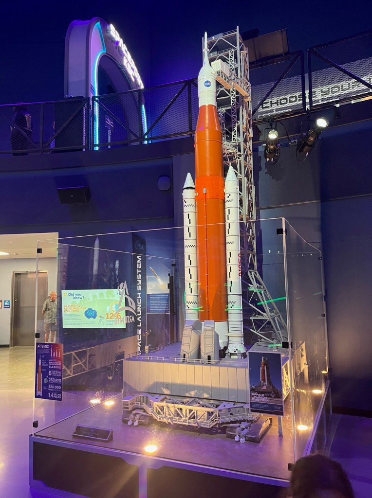 The next day, the whole family went to the NASA Kennedy Space Center. It was really amazing to see the Space Shuttle Atlantis. It is so much bigger in person than it appears on TV and in photos. I also had no idea the crew quarters were all up front, and, when in space, the shuttle’s cargo bay is always open (as shown in the photo below).